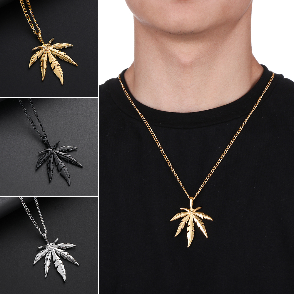 1Pcs Maple Leaf Necklace Hemp Leaf Pendant Charm Chain Necklace for Men Women Fashion Hip Hop Jewelry Necklace Gift Jewelry