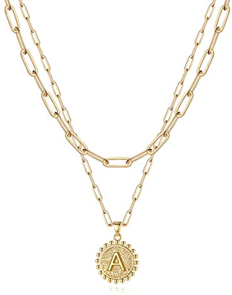 Layered Hexagon Letter Necklaces Paperclip Necklace Set for Women man Collier Chain Choker Initials Pendant Couple Jewelry Gifts